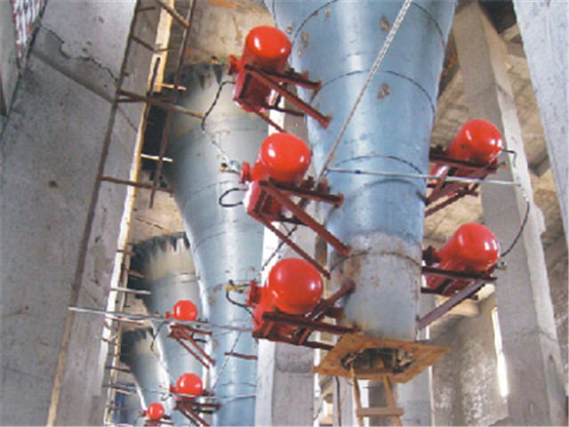 空氣炮一般來講易起拱、堵塞的部位,在垂直倉壁與錐型料斗結合部至下部,重量輕、安裝自由度較大,以防炮口進入污水